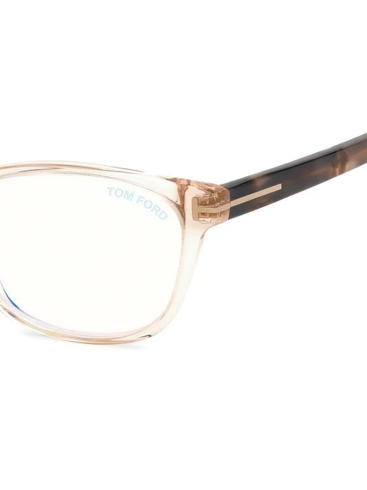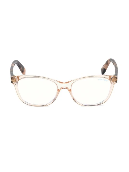 Transparent frames and marbleized acetate temples define these eyeglasses, decorated with signature T-logo at sides.