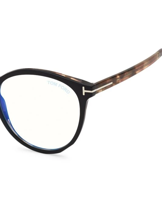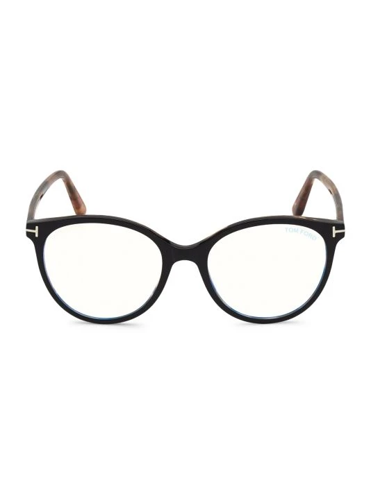 Slender round frames define these optical glasses, decorated with signature T-logo hardware at sides and contrast temples.