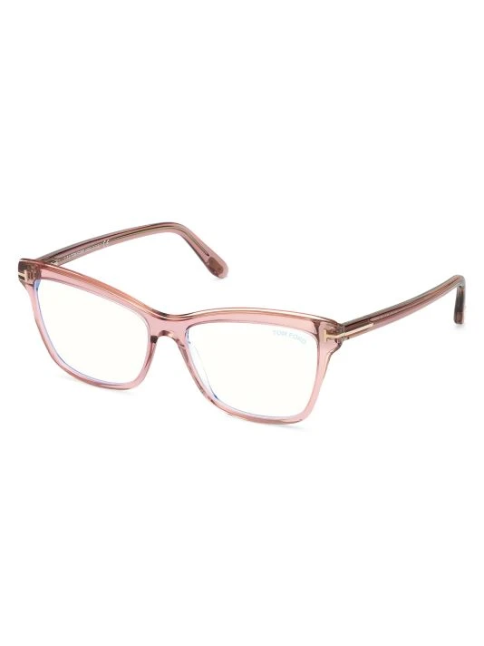 Square transparent frames define these timeless eyeglasses decorated with signature T-logo at sides.