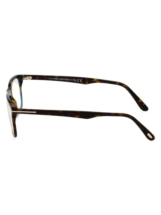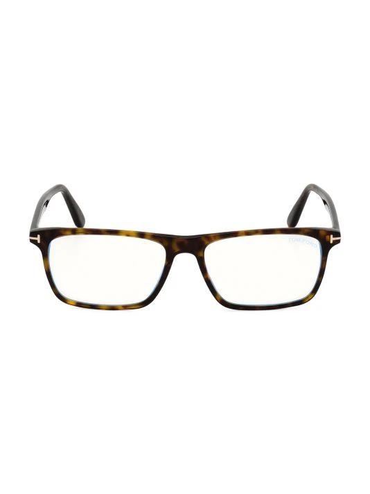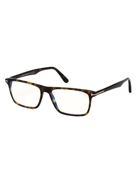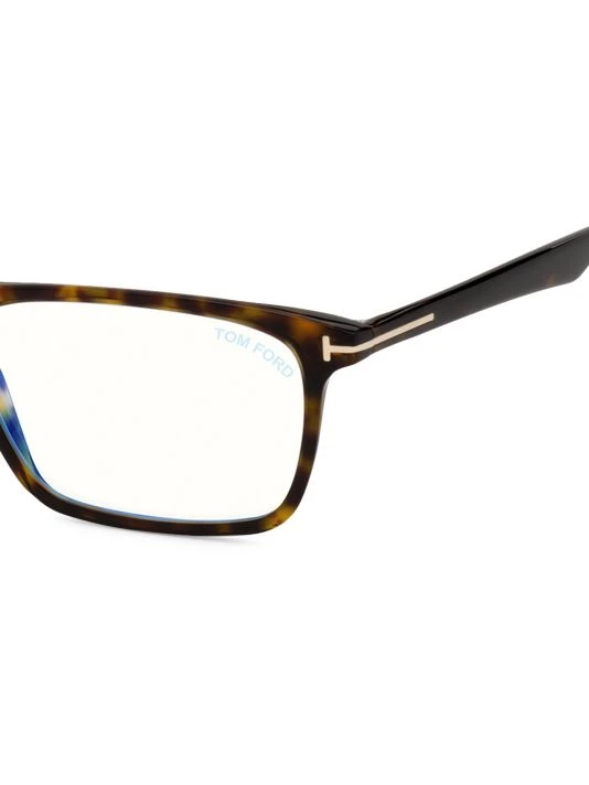 Optical frames with signature metal T at the temple features blue light filter lenses designed to reduce eye strain from digital screens.