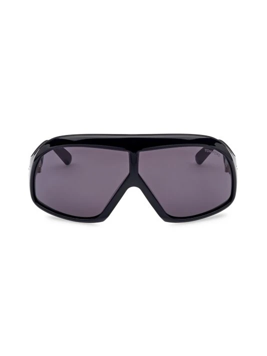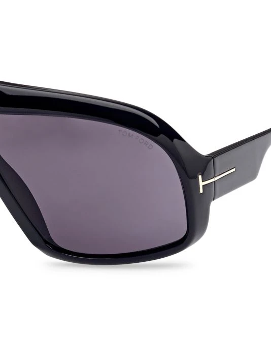 Bold pilot sunglasses boasts futuristic charm with oversized shield frames, finished with signature T-logo at sides.