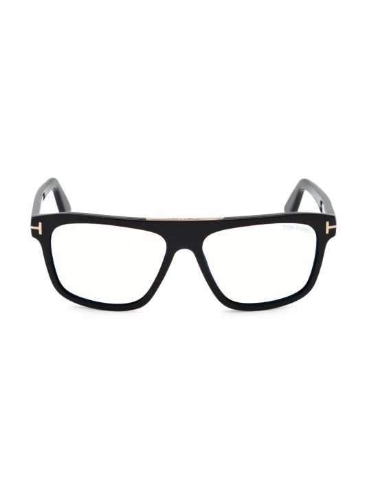 Flat top acetate sunglasses with metal T logo accent at the temples.