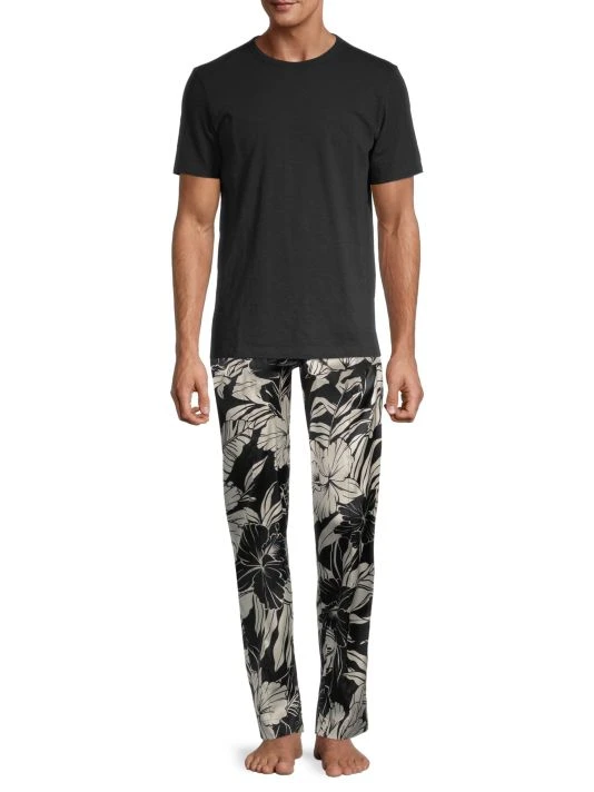 A muted hibiscus print adds tropical flair to these stretch-silk pajama pants.