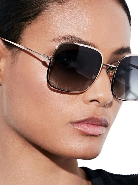 Delicate metal sunglasses with gradient lenses exude a vintage-inspired elegance.